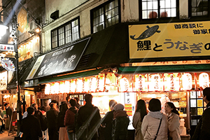 A shopping district that runs about four hundred meters long north of the East Exit of JR Akabane Station. This is a recommended spot for you if you want to enjoy yourself at a bar district in Tokyo at night. There are over forty izakayas crowded with local residents, which serve dishes such as oden, yakitori, seafood, and giblets cooked in a hot pot.